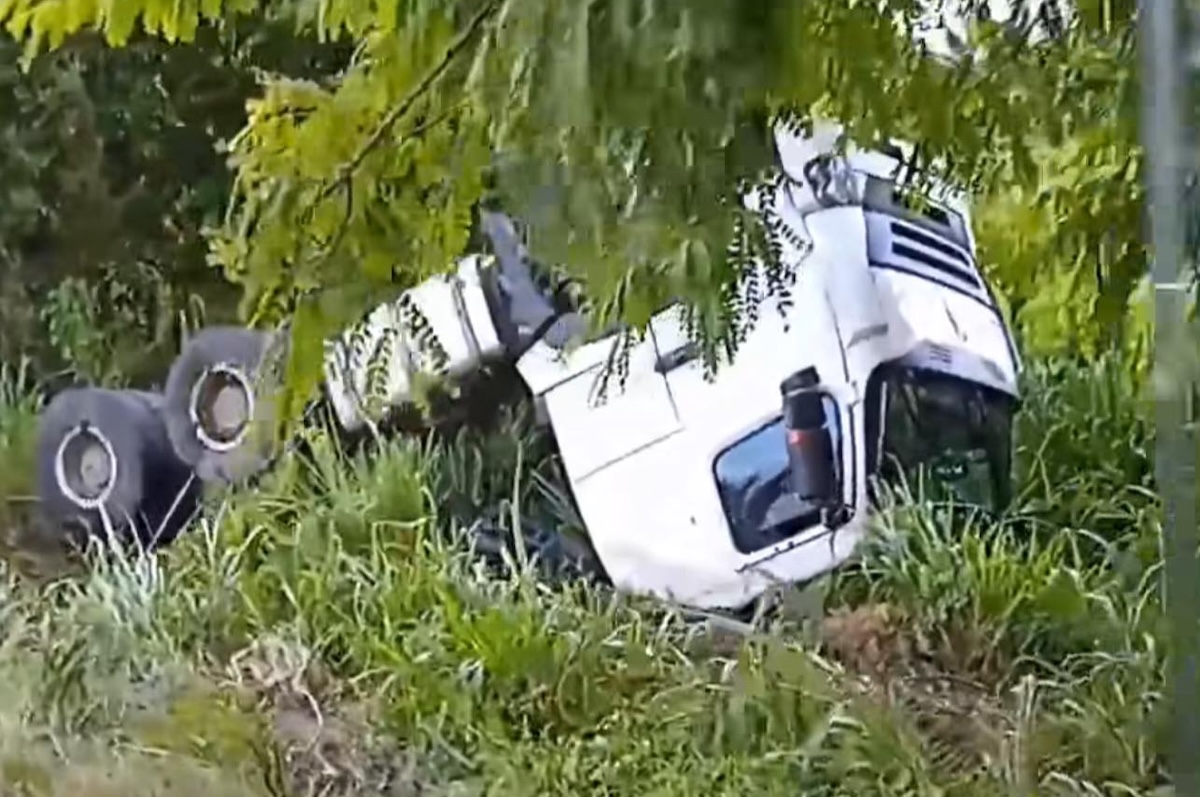 Las imágenes compartidas muestran el vehículo de gran porte en posición lateral, parcialmente cubierto por la maleza a un costado de la carretera. Hasta el momento no se ha confirmado la magnitud de los daños materiales ni si hubo lesionados como consecuencia del siniestro.