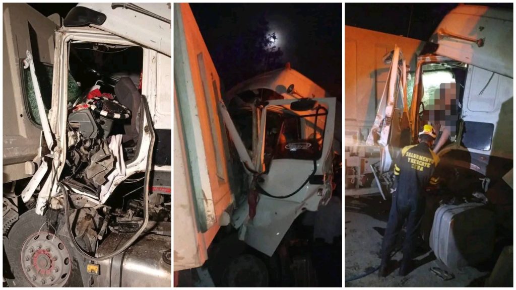 De acuerdo con testigos, un camión fue impactado por una rastra que circulaba detrás, provocando que el chofer del primero quedara atrapado en la cabina.