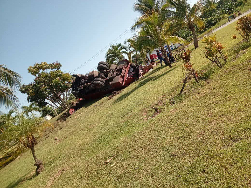 Santa Clara – Un accidente de tránsito ocurrió esta mañana en la Rotonda de la Autopista de la Circunvalación de Santa Clara, en la provincia Villa Clara, donde un camión terminó volcado en plena vía.