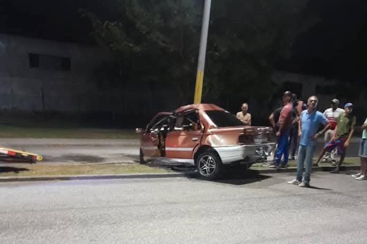 Un accidente de tránsito tuvo lugar en la madrugada de este viernes en la Avenida 25, en las inmediaciones del Hospital Militar en La Habana, según informaron testigos presenciales. El siniestro ocurrió poco antes del amanecer, cuando un automóvil Peugeot 5405 colisionó violentamente contra un poste del tendido eléctrico, provocando su deformación.