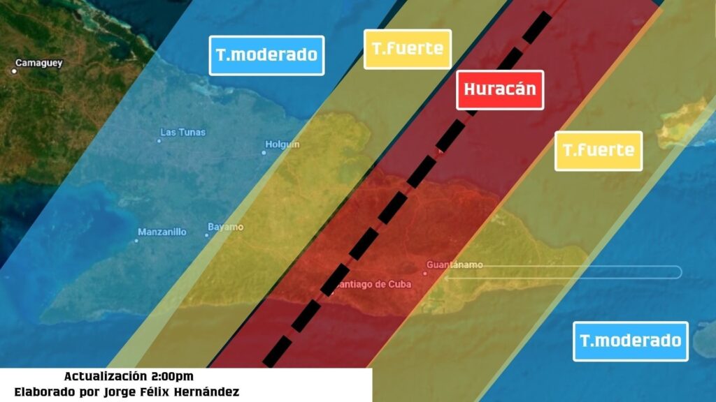 De acuerdo con el meteorólogo Jorge Félix Hernández, los análisis de esta tarde confirman un comportamiento muy peligroso de los vientos, con un patrón de afectación que abarca un amplio sector del oriente cubano.