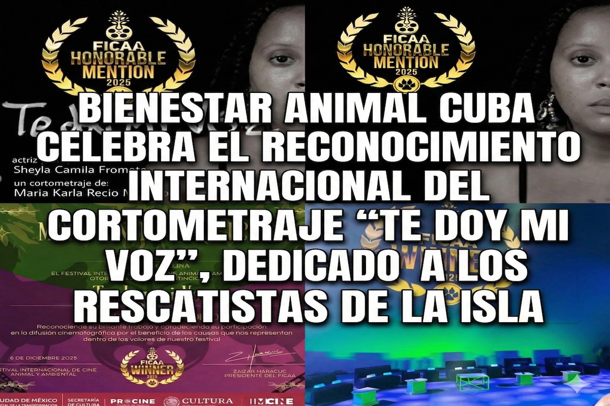 El movimiento animalista en Cuba celebra un nuevo motivo de orgullo tras conocerse que el cortometraje “Te doy mi voz”, dirigido por la cineasta cubana María Karla Recio Mederos y protagonizado por Sheyla Camila Frometa, obtuvo una Mención Honorífica en la categoría Animal del Festival Internacional de Cine Ambiental y Animal de México (FICAA 2025).