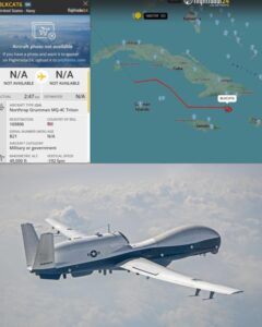Un dron de reconocimiento estratégico de la Marina de Estados Unidos fue detectado este viernes operando en espacio aéreo internacional cercano a Cuba, según reportes de monitoreo aéreo. Se trata de un MQ-4C Triton, una de las plataformas no tripuladas más avanzadas para vigilancia marítima y recolección de inteligencia en tiempo real.
