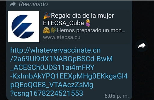 De acuerdo con Etecsa, se ha observado un aumento en los reportes de usuarios que han recibido mensajes invitándolos a participar en supuestas promociones de la empresa. Estos mensajes redirigen a los usuarios a sitios web como tupremio.com, dinerofacil.com o viajesgratis.com, que en realidad están diseñados para robar información personal y suplantar identidades.