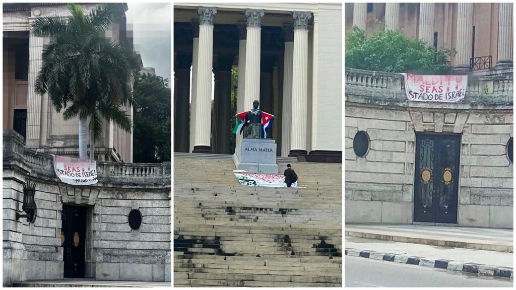 La Habana, 10 de octubre de 2025. – Profunda indignación ha causado la aparición de un cartel antisemita en la Universidad de La Habana, en el que se lanzaban maldiciones contra el Estado de Israel, justo pocos días después del acuerdo de paz alcanzado entre el Gobierno israelí y Hamás, mediado por el presidente de Estados Unidos, Donald J. Trump.