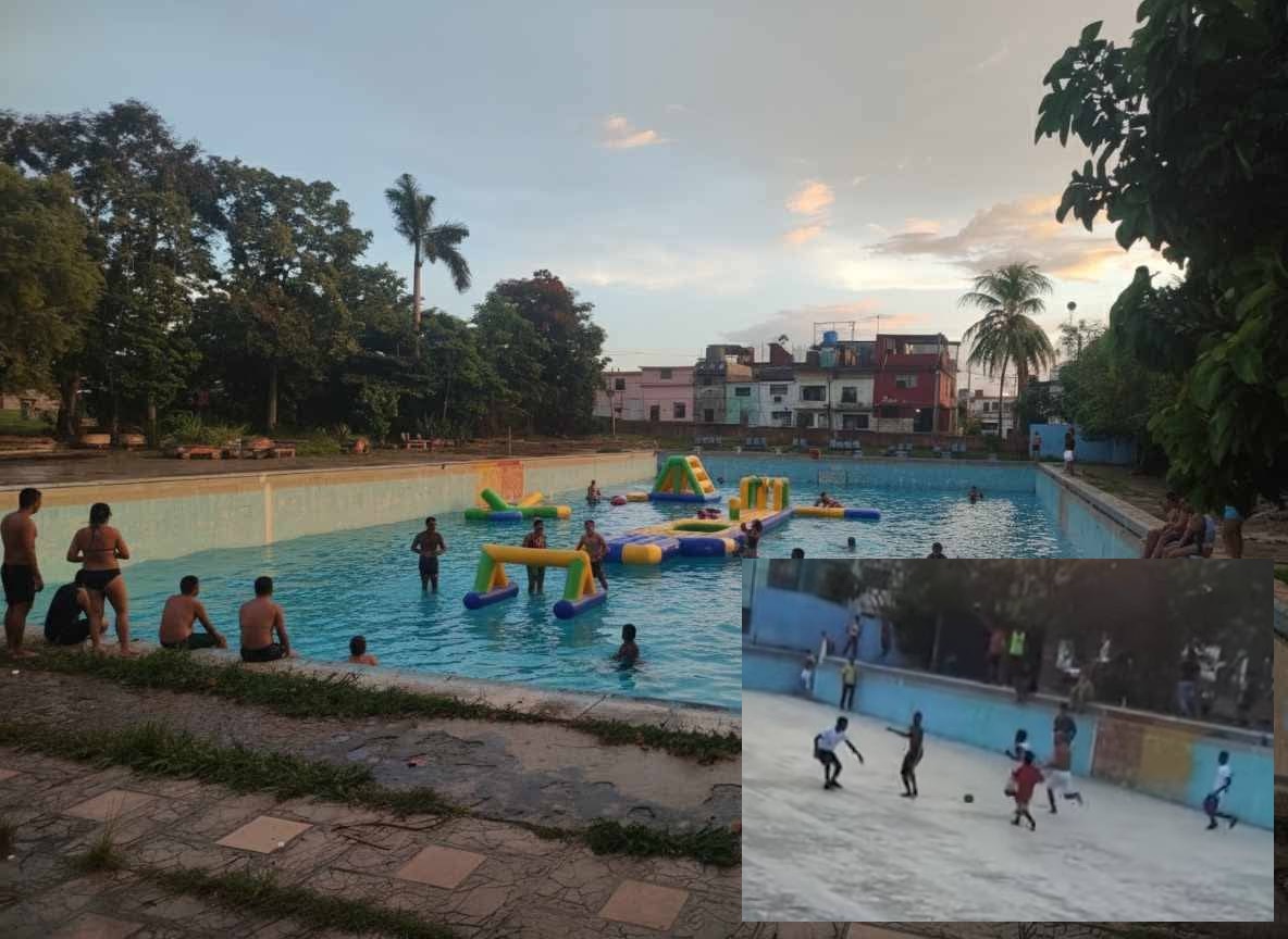 Lo que alguna vez fue un símbolo de orgullo barrial en Pogolotti, hoy solo es un recuerdo. La piscina del Complejo Deportivo “Jesús Menéndez”, que en el pasado acogió a familias enteras en jornadas de recreación y deporte, permanece vacía y deteriorada. El espacio, lejos de su función original, ha sido transformado por los jóvenes en una cancha improvisada de fútbol.
