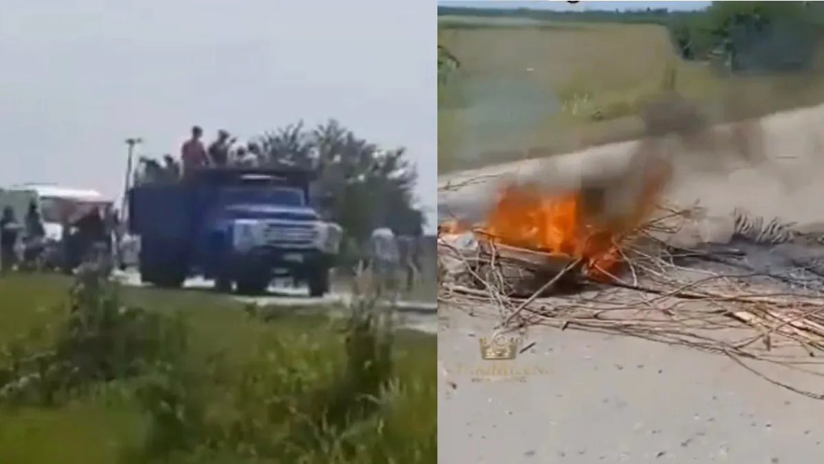 Según reportes difundidos en redes sociales por el periodista independiente Mario Vallejo, varios manifestantes encendieron fuego en distintos puntos de la vía, lo que obligó a detener completamente la circulación de vehículos y transporte público durante varios minutos.