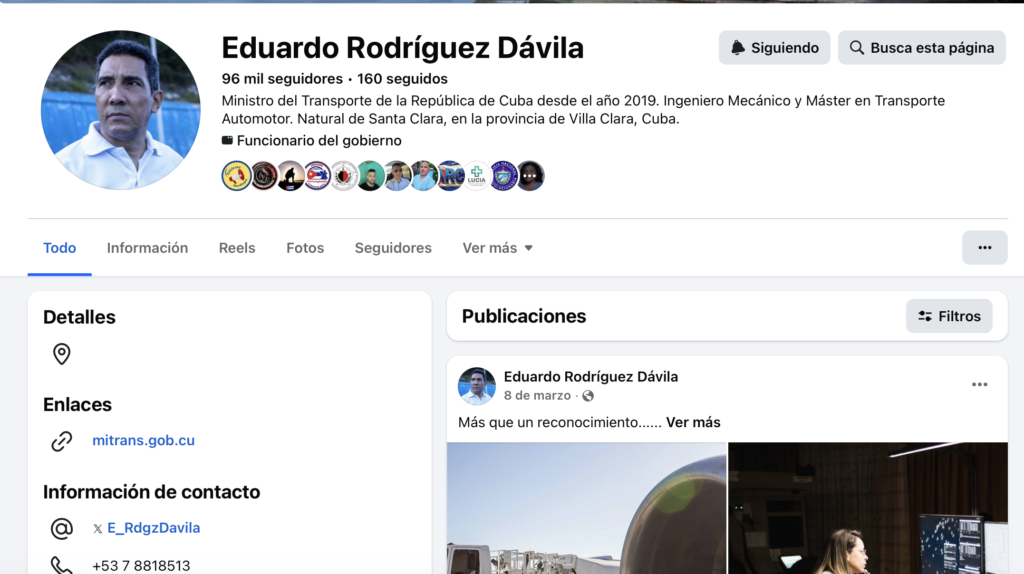 El perfil público del ministro de Transporte de Cuba, Eduardo Rodríguez Dávila, permanece sin actualizaciones desde el 8 de marzo, una pausa que ha despertado interrogantes en distintos espacios informativos y entre usuarios que seguían de cerca su actividad digital.