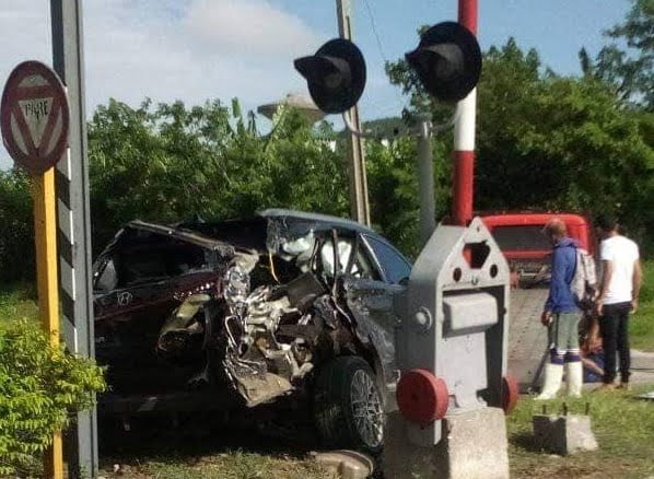 Colisión sin víctimas en Santa Clara: Tren impacta auto Hyundai