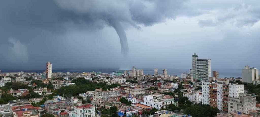 📍 La Habana, 8 de agosto de 2025 — Una tromba marina se formó en la tarde de este jueves frente a las costas del Vedado, en pleno Malecón habanero, sorprendiendo a residentes y transeúntes con un fenómeno tan llamativo como inquietante. Las redes sociales se inundaron de imágenes y videos captados desde distintos puntos del litoral capitalino, mientras que hasta el momento, las autoridades meteorológicas cubanas no han emitido una nota oficial al respecto.
