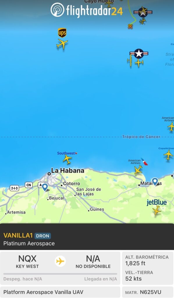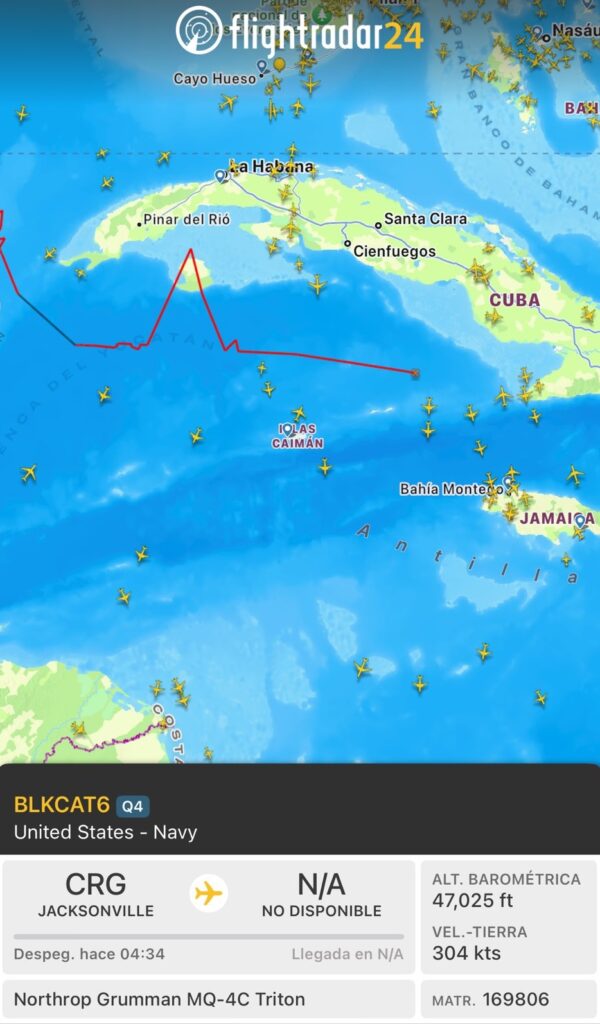 Las imágenes compartidas muestran trayectorias que han sido interpretadas por algunos usuarios como una posible violación del espacio aéreo cubano, aunque hasta el momento no existe confirmación oficial independiente que valide ese extremo. Expertos en aviación señalan que este tipo de plataformas puede operar en espacio aéreo internacional muy próximo a territorios nacionales, lo que a menudo genera confusión en visualizaciones abiertas.