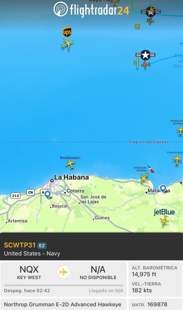 En las últimas horas, plataformas de monitoreo aéreo como Flightradar24 han registrado la presencia de aeronaves militares de Estados Unidos operando en zonas cercanas a Cuba, incluyendo trayectorias que, según capturas difundidas en redes sociales, habrían pasado próximas a la Isla de la Juventud, generando dudas sobre una posible incursión en el espacio aéreo nacional.